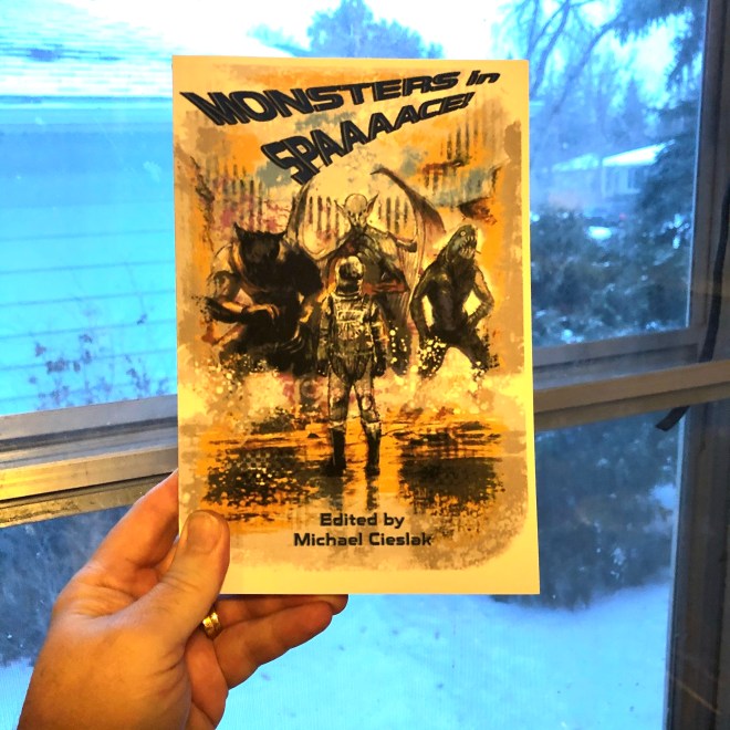 I’m making a big thing of this because it is, in my life, a big thing. I have never had an author’s copy of a print book before. It rates as a big milestone in my writing career, which by the measure of “correctly making an effort to present stories to paying markets” is not very old.