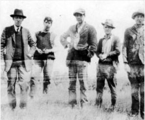 The description of this photo was “Lovecraft with the Lee boys in West Guilford, Vermont, June 10, 1928.”  Before we get into mundanity… I would be somewhat concerned if I were to step out of my Vermont farm-house in 1928 to discover this motley bunch of roughs.  This is somewhat before Dillinger, Floyd, Barrow and Parker made the US famous for its swarms of tommy-gunning celebrity thieves, but all the same, this looks like a proper crime-film wrecking crew. From right to left, you’ve got: