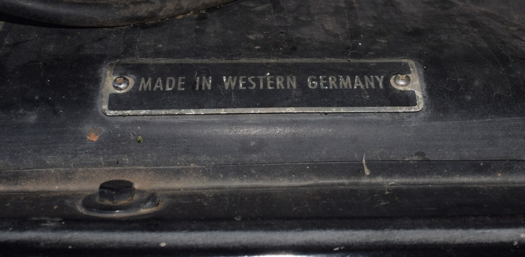 As the plate indicates, it’s a 1961 model, making it a half-decade older than me, and almost a half-century older than the vehicle I currently get about in. This little plate inside the engine compartment gives an excellent feeling for the state of the world at the time of its creation: